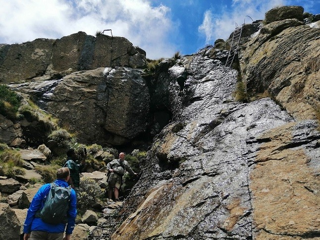 Rozhodně ne! (smích) Nejsem zrovna „young and sporty“… Mentálně jsme sice všichni byli ve skvělé kondici, fyzicky už to ale bylo horší, jen kolega Fanda je ve formě. Ani jeden z těch výstupů nebyl jednoduchý. Jednoduše řečeno, Tugela je vodopád, který si musíte zasloužit. Ale právě to je na tom to hezké. Z dálky vodopád vidíte už z dvanácti kilometrů, pokud máte štěstí na počasí. Ale dojít k jeho patě nebo až na hranu, to je dřina. Cestou překonáváte asi 500 výškových metrů, šplháte po řetězových žebřících, lezete roklí, často i vodou. Většina lidí tam chodí velmi dobře vybavená, mají speciální oblečení, batohy s vestavěnými lahvemi na pití… Ale my, my jsme celou první cestu šli v sandálech. (smích)