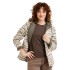JATENGA je dámská oboustranná bunda (khaki/zebrovaný vzor) vyrobená z pevné bavlny v keprové vazbě (twill). Odepínací kapuce na zip je doplněná brandovými druky po stranách. Velikost v pase je možné upravit díky regulaci na druky a záhyby v oblasti loktů zajišťují volnost pohybu. Boční kapsy lze pohodlně zapnout pomocí skrytých druků, zatímco poutko na pověšení je drobným praktickým detailem. Kvalitní YKK kovový zip zaručuje dlouhou životnost.