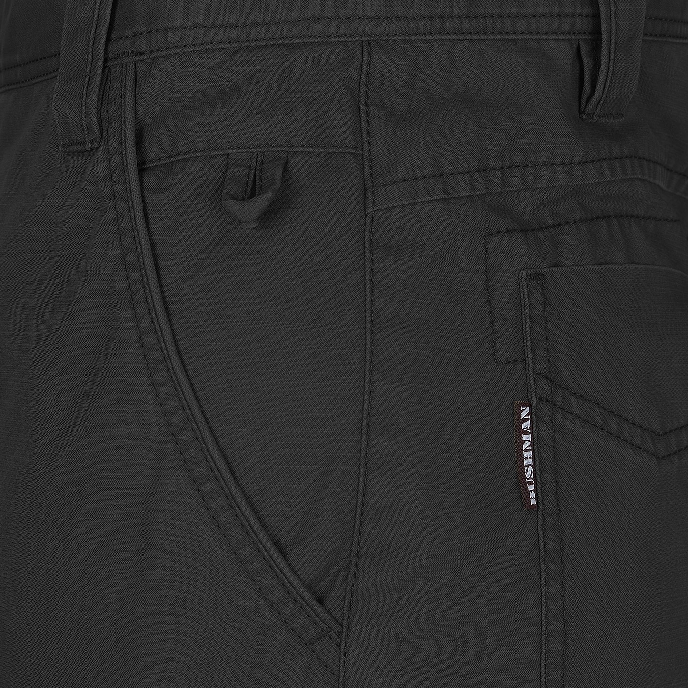 Spokojeni budete i s „vychytávkami“ a funkčními detaily. Přední klínové kapsy jsou dostatečně hluboké. Příjemná je hodinková kapsa na drobnosti. Boční kapsa se zapíná na zip a zadní nakládané kapsy jsou odolné proti vytržení. Chytrou maličkostí je poutko na klíče. Standardem je kvalitní YKK zip s dlouhou životností. Nad boční kapsou je umístěna decentní výšivka a logo BUSHMAN najdete na nášivce pravé zadní kapsy.