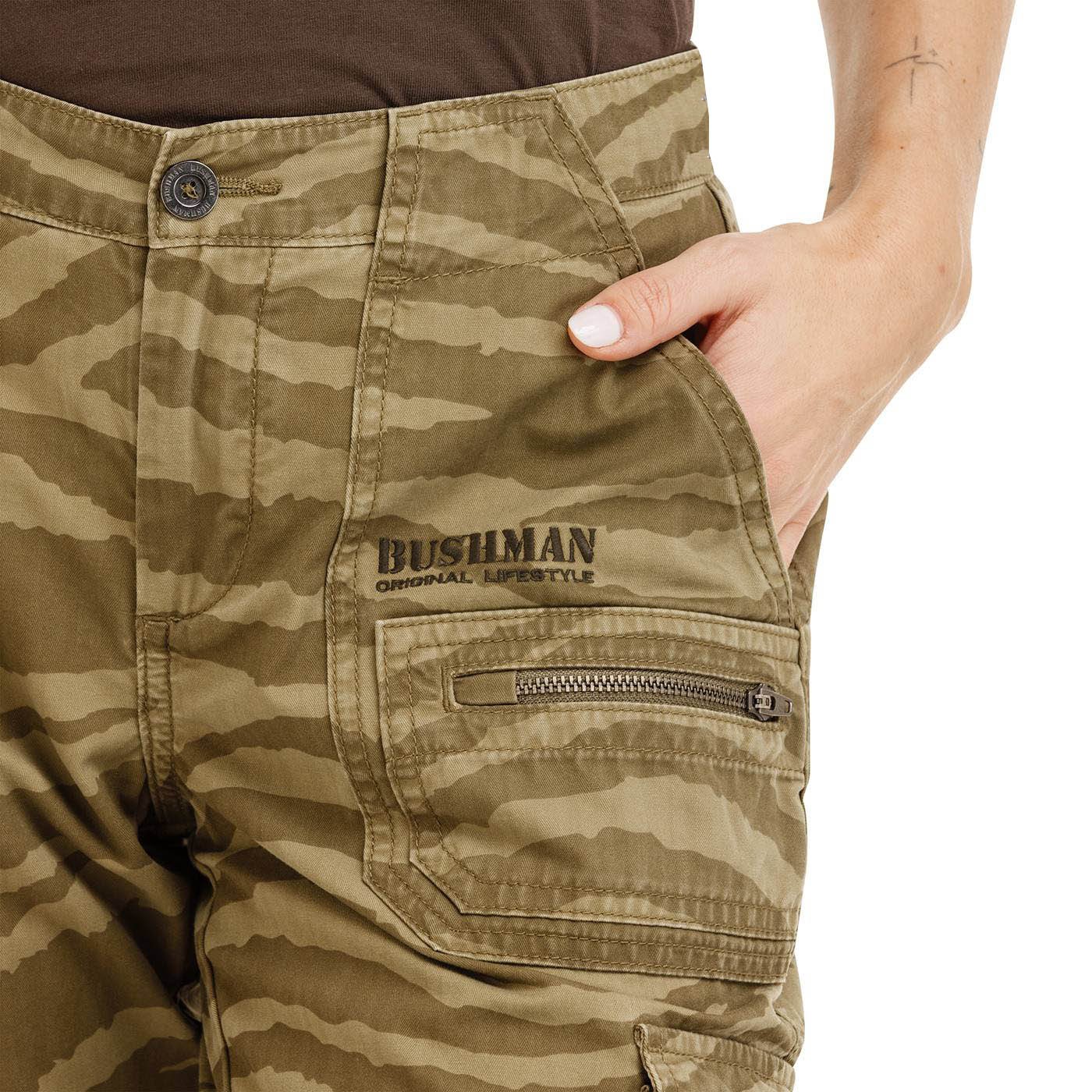 Zebrované kapsáčové kalhoty kombinují odolnost a styl v jednom. Broken twill vazba dodává látce pevnost a odolnost, zatímco členící švy a tvarování nohavic, které jsou v dolní části stažené do gumy, podporují pohodlný pohyb. Praktické boční měchové kapsy mají skryté kovové druky, přední horní kapsy doplňuje levá kapsička na zip pro drobnosti. Zadní kapsy se zapínají na kovové knoflíky. Výrazný maskáčový vzor pak dodá celému outfitu šmrnc a autentický bushmanský nádech.