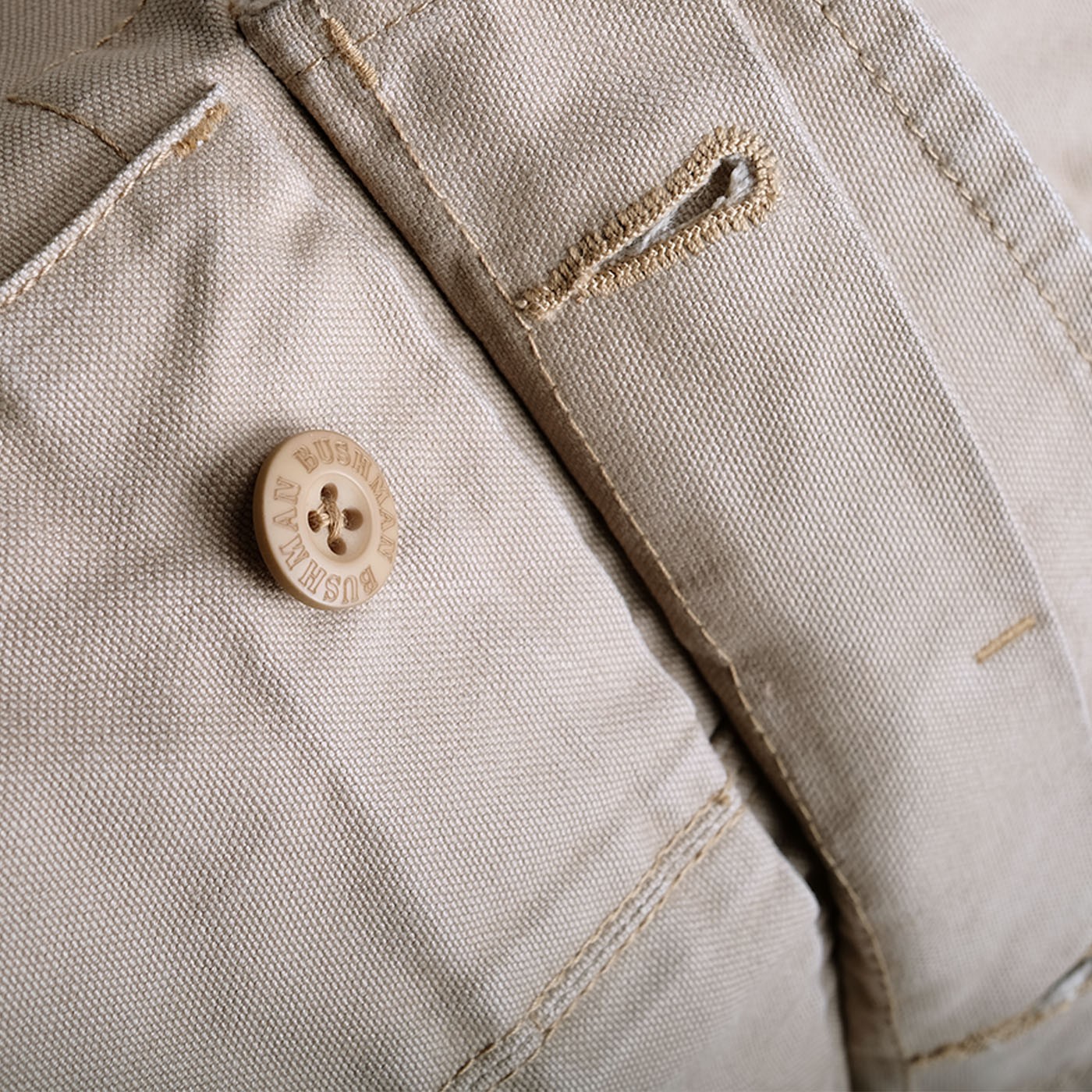 Kalhoty BUSHMAN OUTFIELD jsou vyrobeny ze 100% bavlny, což jim dodává potřebnou prodyšnost. S cílem ještě více je „obrnit“ byl při výrobě použit trojitý steh, což je unikátní technika šití pevných švů právě za účelem vyšší odolnosti. Kalhoty mají lehce pobroušený povrch.