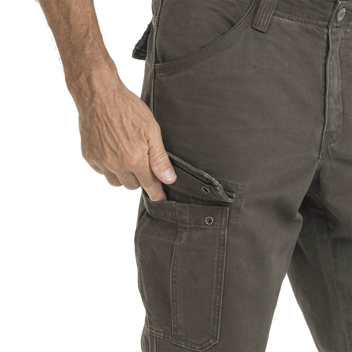 Kapsáče ušité z pořádné bavlněné tkaniny s vyšší gramáží mají pobroušený povrch a prošly změkčujícím praním, takže pohodlí máš jisté od první chvíle, kdy si je oblékneš. Objemné nakládané kapsy na skryté druky (společně se zadními kapsami, také na druky) spolehlivě pojmou vše, co potřebuješ mít neustále po ruce. Uvnitř najdeš i malou kapsičku na mince – protože každý dobrodruh musí občas platit hotově. A zevnitř v pase tě čeká decentní detail – brandový potisk.