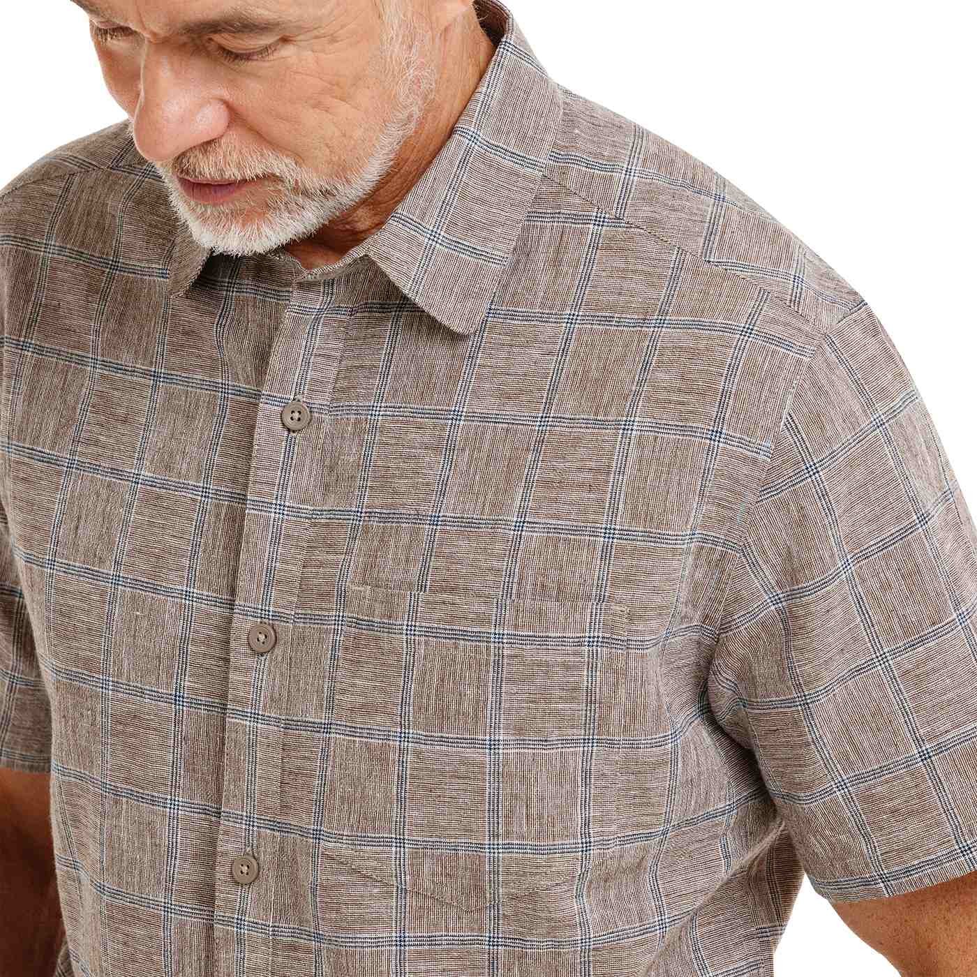 Košile KWAME je vyrobená z lehké směsi bavlny a lnu, což zajišťuje prodyšnost a příjemný pocit i v horkých dnech. Má krátký rukáv, rovný užší střih a čistý design. Neschází ani jedna náprsní kapsa. Na zadním sedle decentní kovový label.