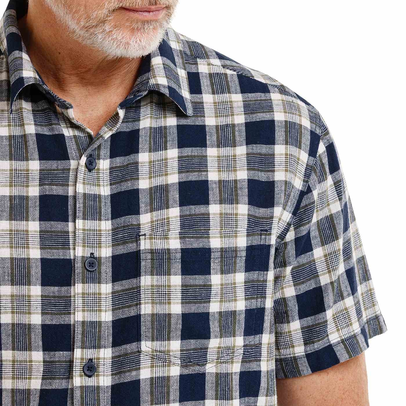 Košile KWAME je vyrobená z lehké směsi bavlny a lnu, což zajišťuje prodyšnost a příjemný pocit i v horkých dnech. Má krátký rukáv, rovný užší střih a čistý design. Neschází ani jedna náprsní kapsa. Na zadním sedle decentní kovový label.