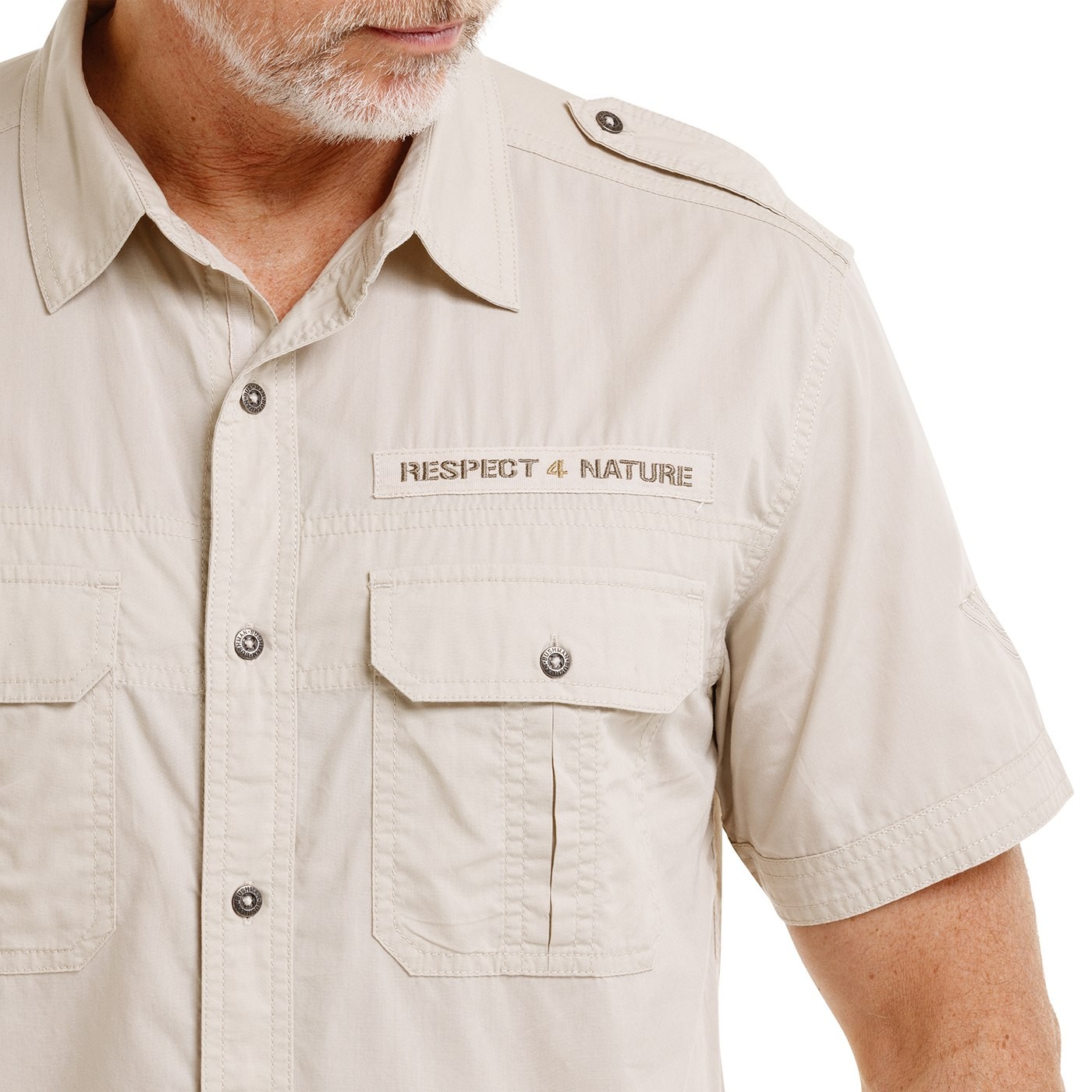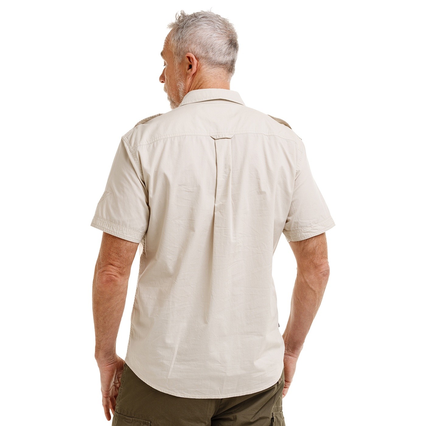 Košile vyrobená ze 100% bavlny s krátkým rukávem má rovný střih a typické expediční zpracování inspirované lehce vojenským stylem. Dvě přední náprsní kapsy s patkami na knoflíčky, náramenice s kovovým knoflíkem a tvarovaný spodní okraj doplňuje protizáhyb na zádech pro větší volnost pohybu.