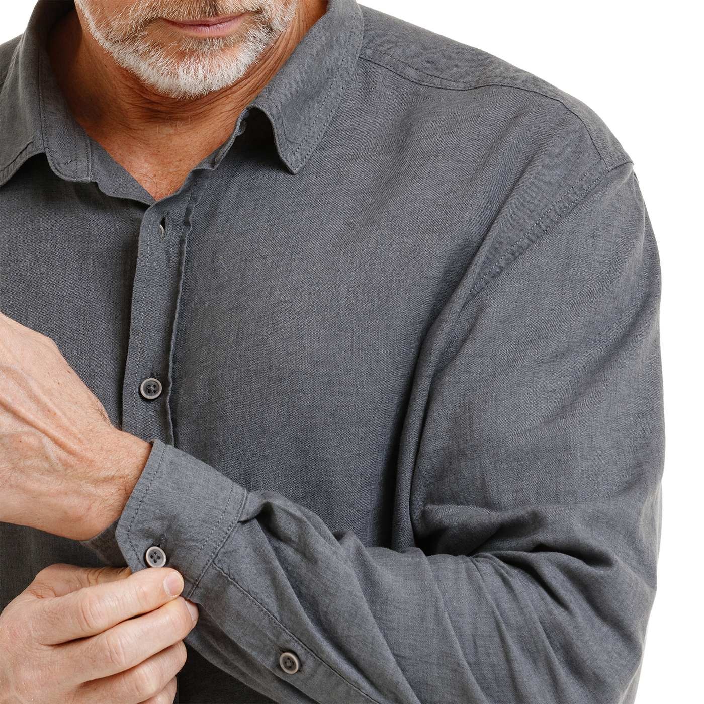 Celopropínací košile z lehké směsi lnu a viskózy EcoVero®, jež zajistí vzdušnost a splývavý efekt. Má dlouhý rukáv s klasickými košilovými manžetami, užší střih a tvarovaný spodní okraj. Dva záhyby na zadním díle pro volnost pohybu. Design bez kapes, doplněný jemnou brandovou výšivkou na zadním sedle.