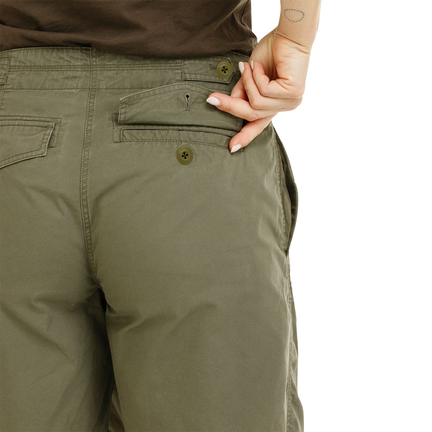 Dámská kraťasová sukně, která kombinuje pohodlí šortek s elegantním vzhledem sukně. Bavlna v keprové vazbě zajišťuje pevnost a zároveň příjemný splývavý efekt. Regulace pasu pomocí brandových knoflíků na bocích umožňuje přizpůsobení velikosti. Praktické boční kapsy a dvě zadní kapsy na knoflík s patkami doplňuje koženkový label na pravé zadní kapse. Jemná brandová výšivka nad levou přední kapsou podtrhuje styl značky.