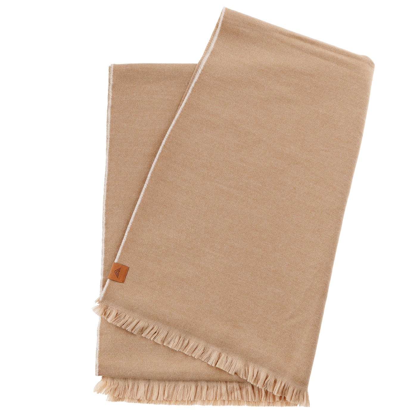 Světle hnědá barva s reverzní stranou v béžových tónech dodává šále na osobitosti a ty ji můžeš stylovat podle nálady i příležitosti, což bude díky rozměru 183 × 60 cm hračka. Na koncích ji zdobí decentní třepení a neschází ani kožený label s typickými BUSHMAN „véčky“ – drobný detail, který říká vše o poctivém řemesle a dobrém vkusu.