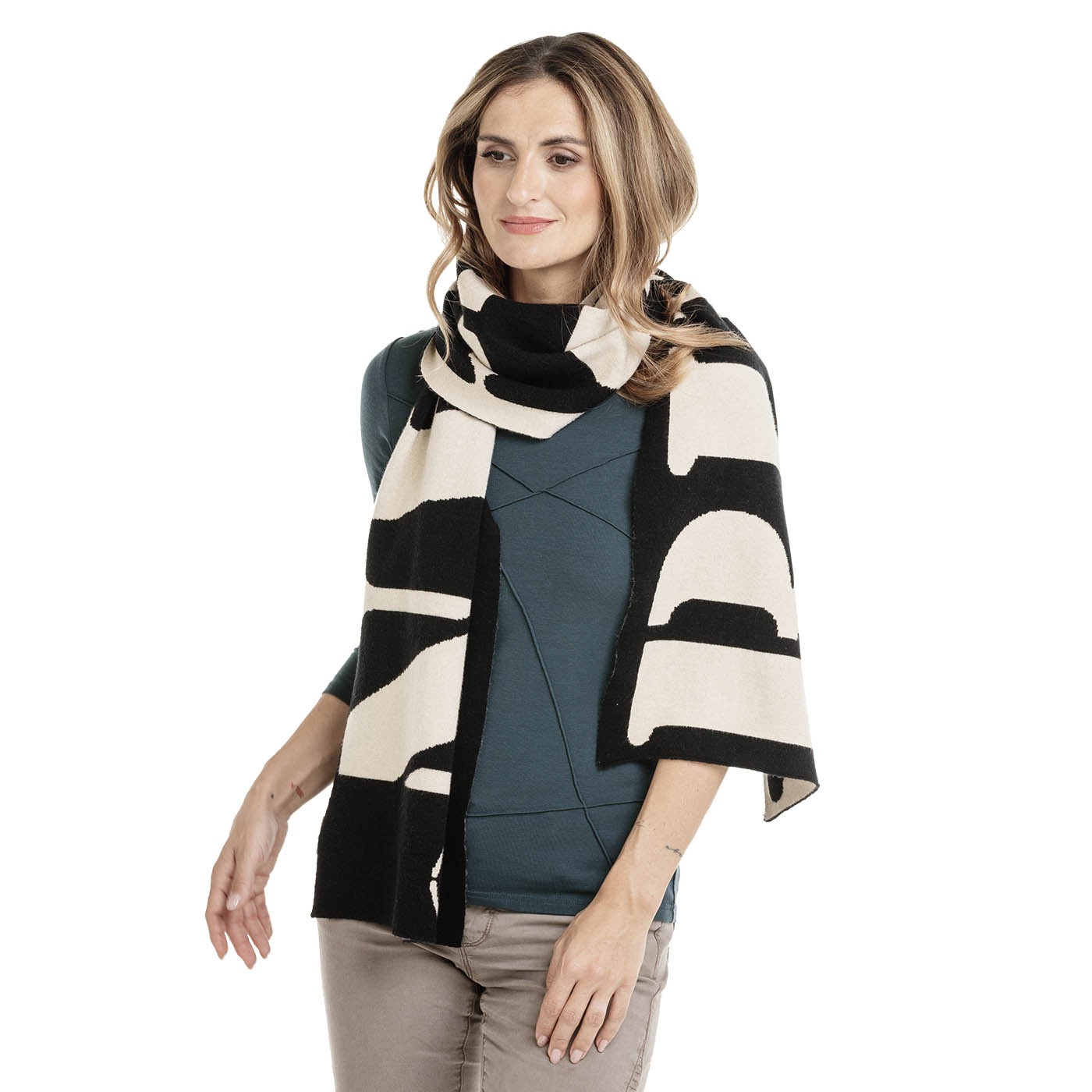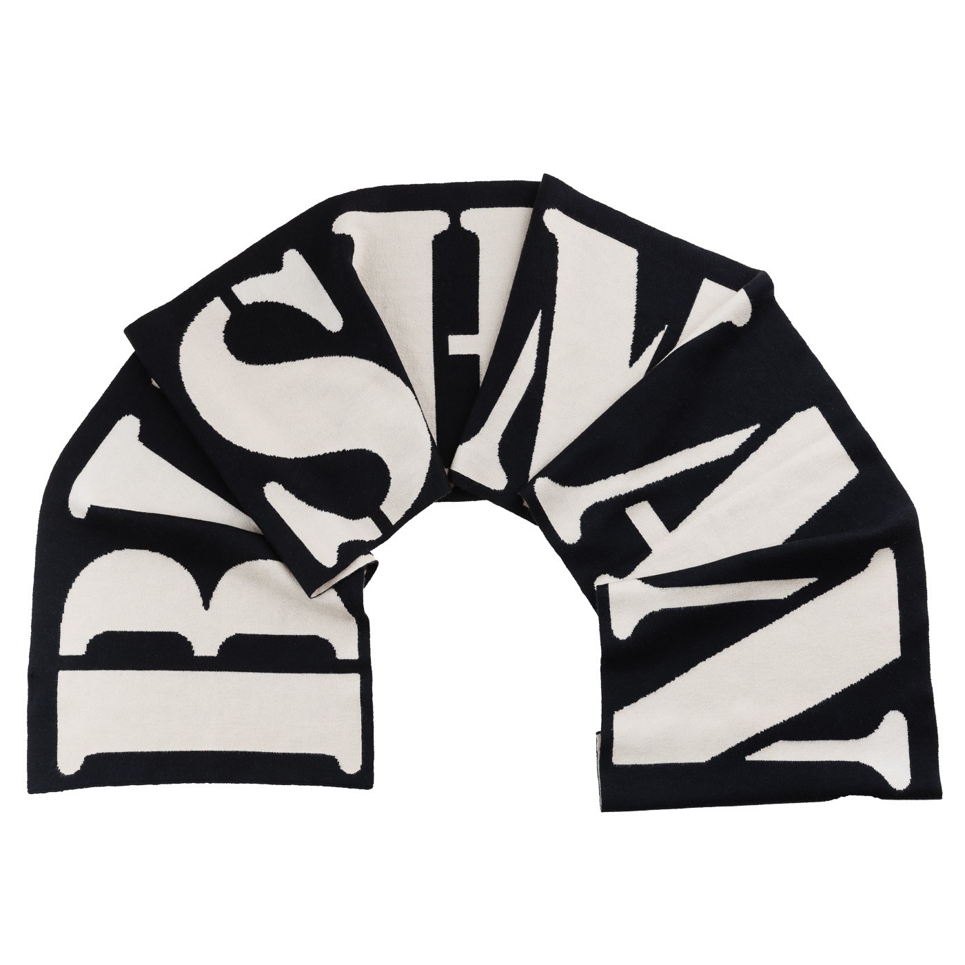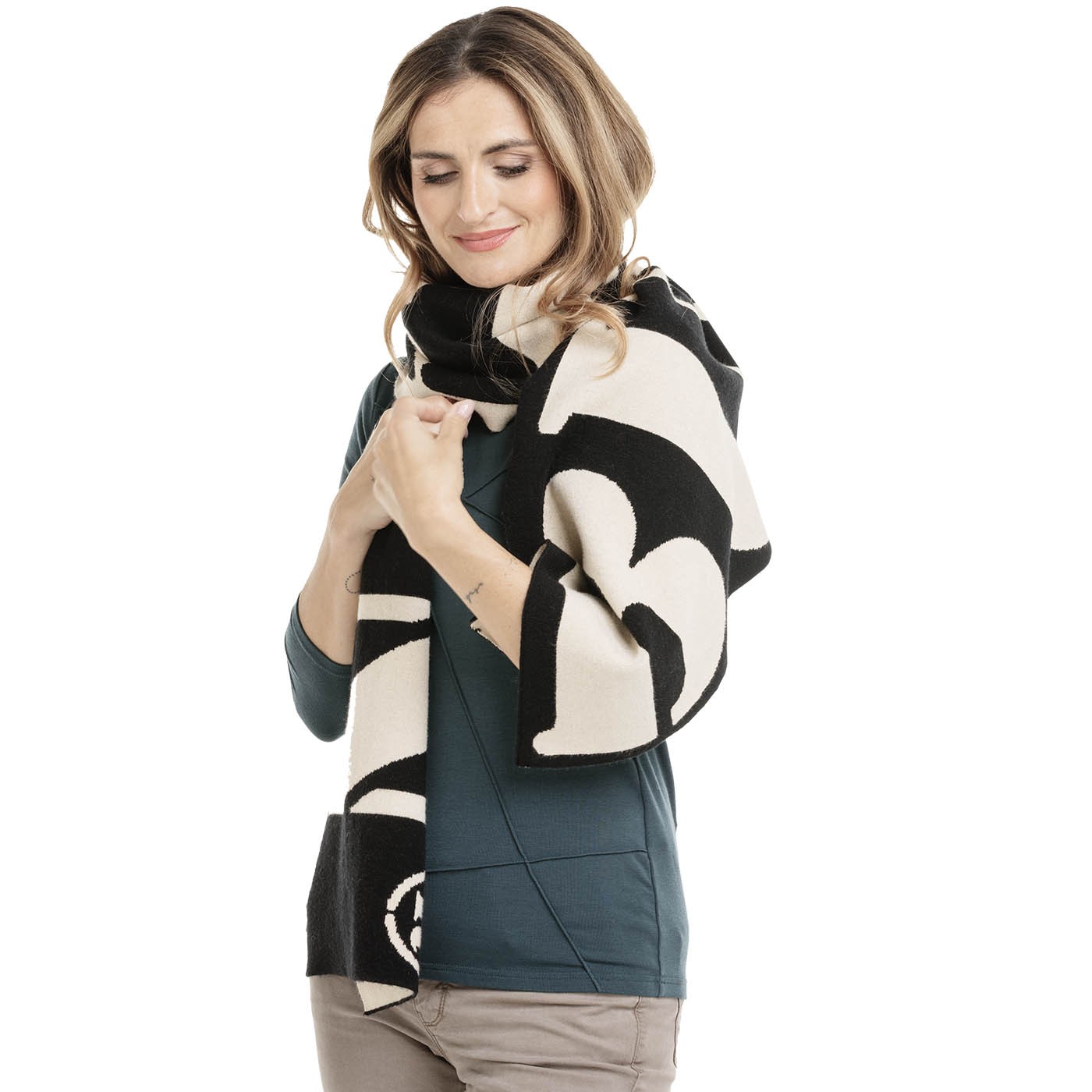 Styl, teplo a pohoda v jednom – černá šála WEWA s výrazným bílým brandovým nápisem tě zahřeje za každých okolností.