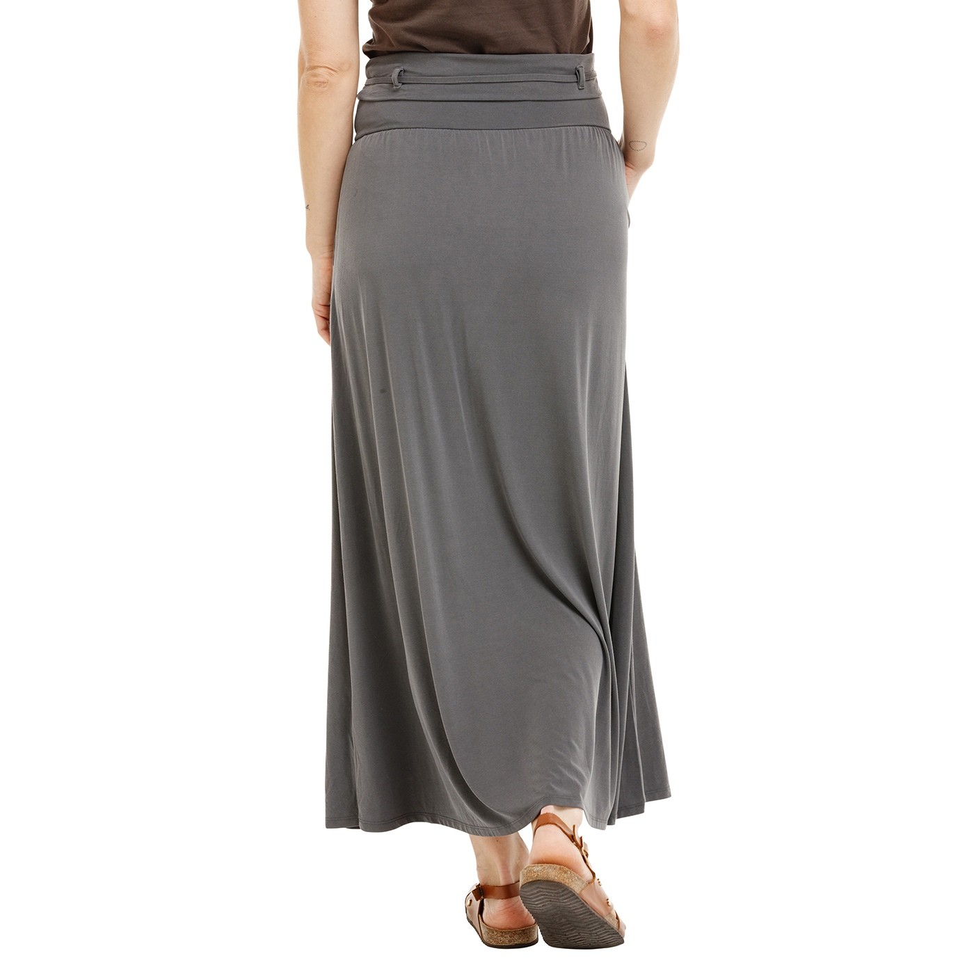 AWKA II je lehká a splývavá dámská sukně z modalu s příměsí nylonu a elastanu. Široký pasový límec lze ohrnout, boční kapsy jsou vsazené do švu. Vnitřní poutka a tkanice s ozdobným kovovým zakončením umožňují (při užití jako ramínek) variabilní nošení sukně jako šatů. Kovový brandový label pod levou kapsou.