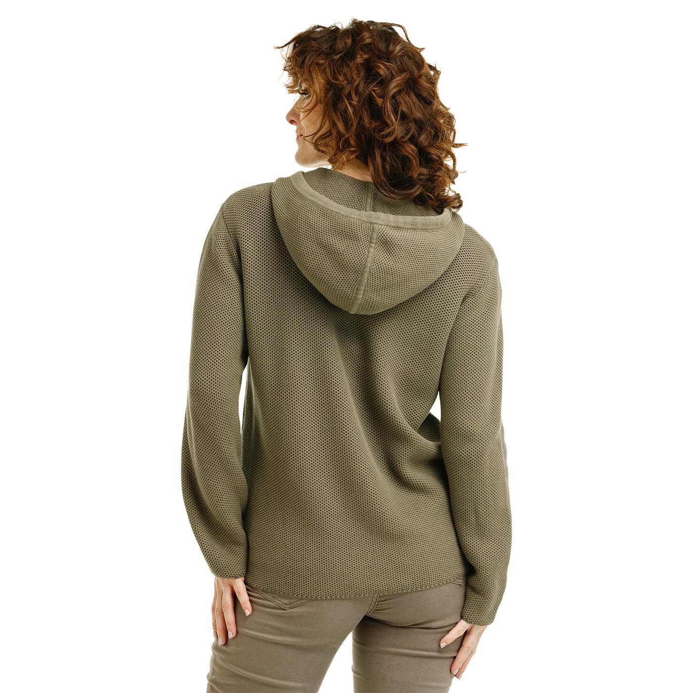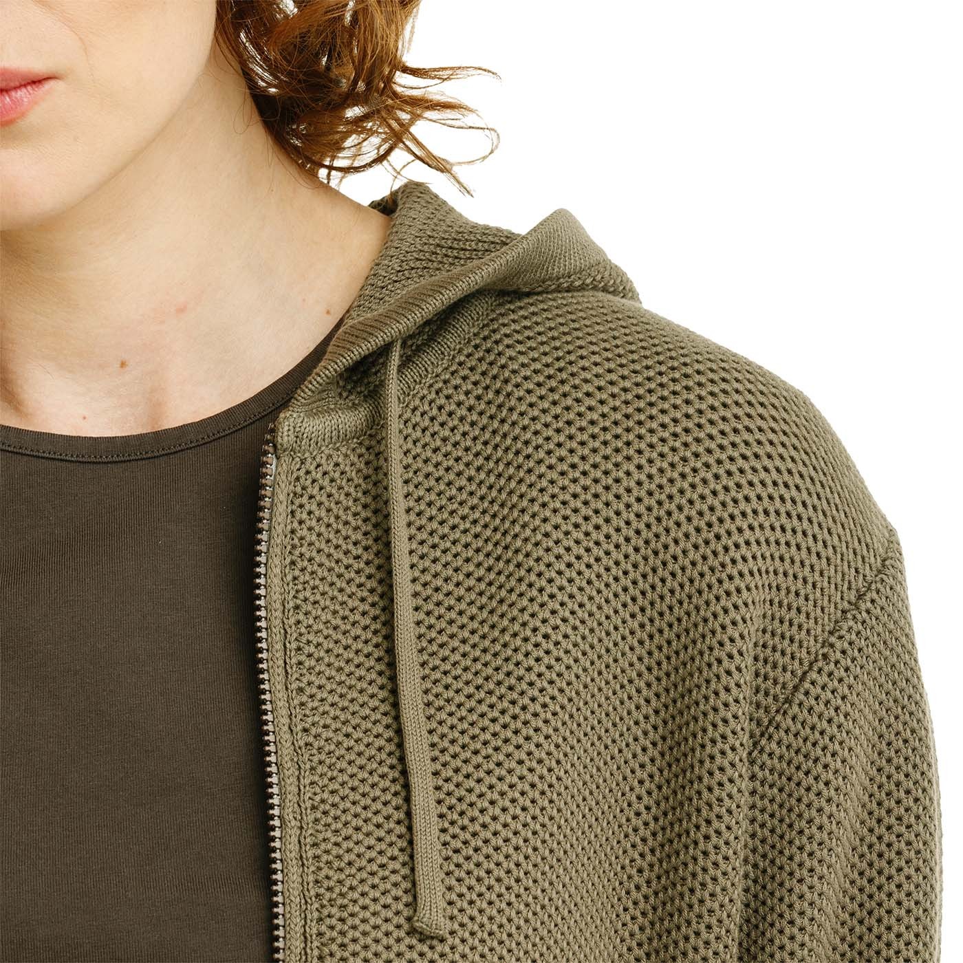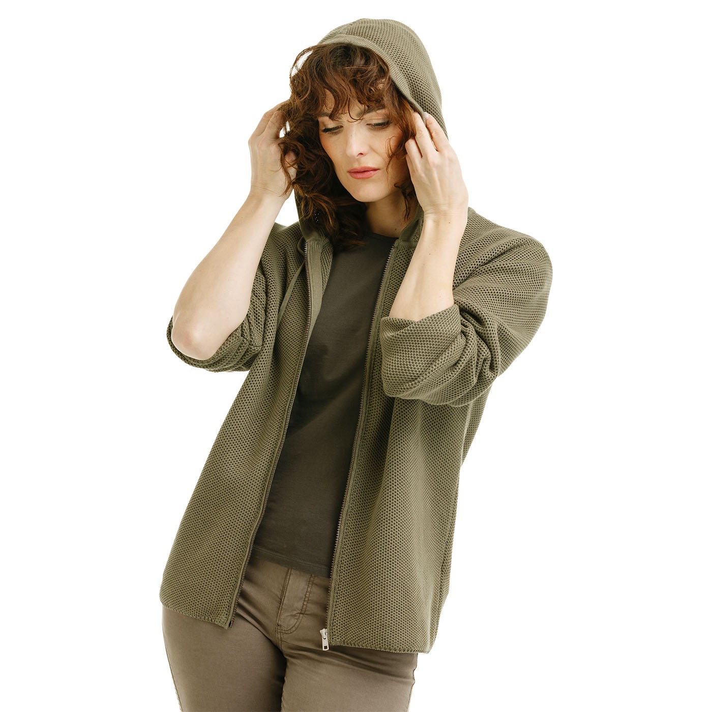 SHARI je dámský celopropínací (YKK plastový zip) svetr s kapucí vyrobený ze 100 % bavlny s jemnou texturou honey comb, která připomíná včelí plástev a je příjemná na nošení. Nechybí ani praktická kapuce se stahováním na šňůrku. Brandový label v dolním lemu jen nenápadně připomíná bushmanský charakter. Materiál prošel úpravou garment dyed (bareveno po ušití) a acid wash, díky čemuž má svetr charakteristický vintage vzhled.