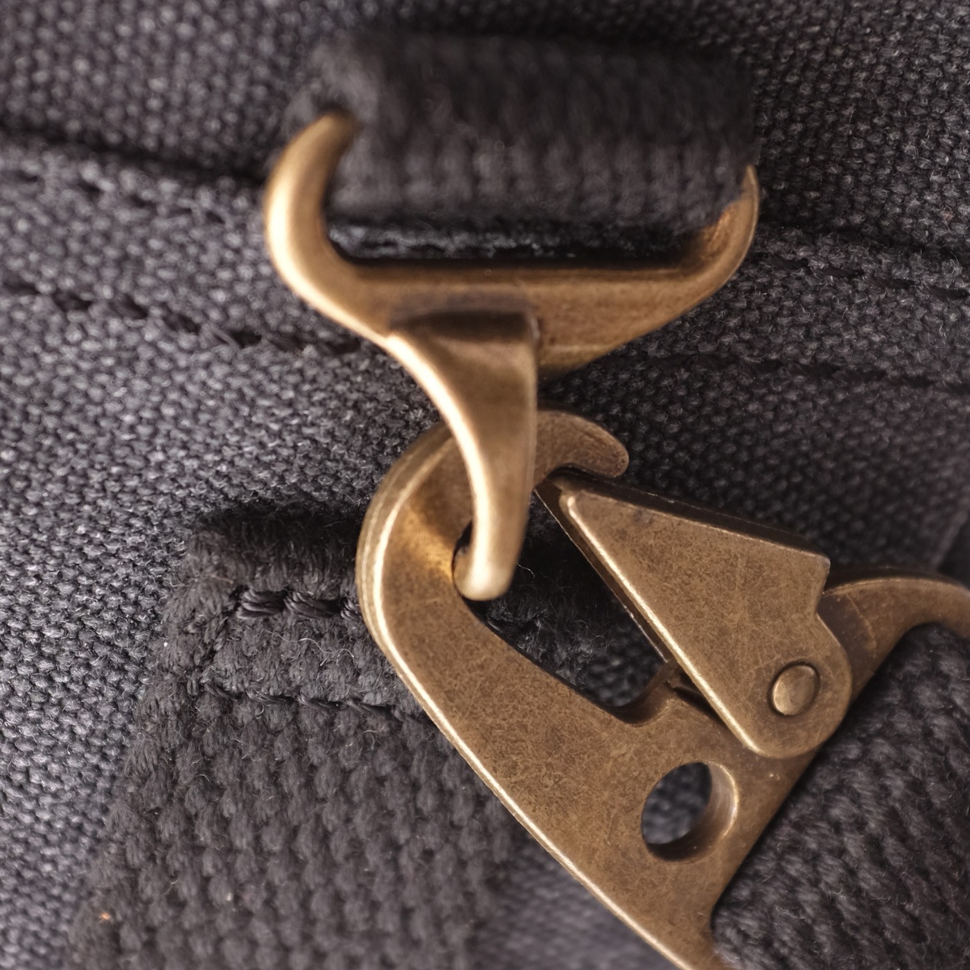Taška ze 100% bavlny (přírodní vlákno), z velmi pevného a odolného materiálu, s detaily z pravé kůže a odepínateným popruhem pro nošení přes rameno nebo kolem pasu. Vybavená řadou praktických kapes.