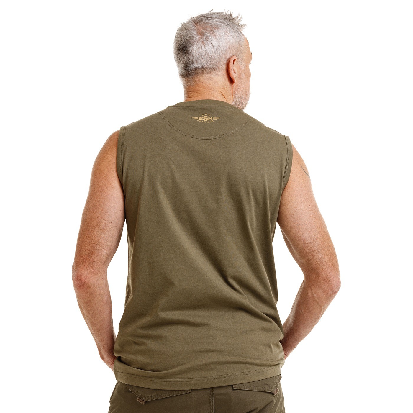 Letní bavlněný (jednolícní pletenina) pánský nátělník, který je prodyšný a příjemný na nošení. Díky rovnému střihu padne na každou postavu. Minimalistický design doplňuje brandový potisk, který přidává kousku autentický bushmanský charakter.