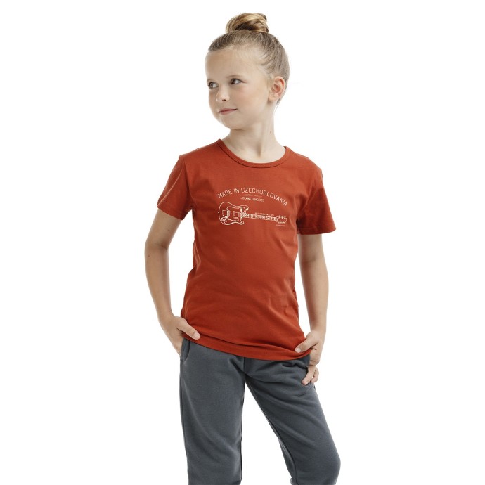 Dětské tričko s hudebním potiskem Guitarra, terracotta