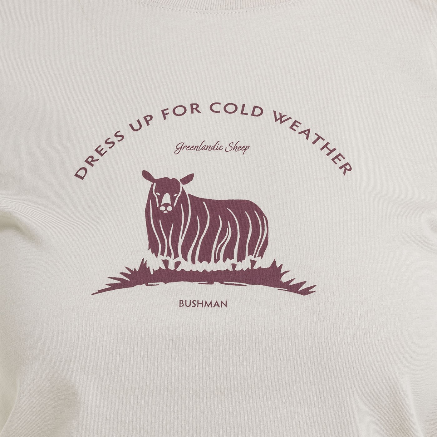 Béžové tričko s obrázkem grónské ovce a nápisem „Dressed up for cold weather“ ti dodá styl a taky pobaví. Hebká bavlna, pohodlný střih a špetka humoru – to je ideální kombinace pro vrstvení nebo odlehčený outfit.