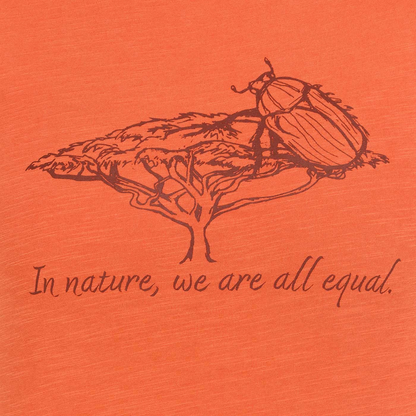 Triko LAYLA v této variantě nese výrazný entomologický motiv brouka, který je doplněn jasným poselstvím In nature, we are all equal. Nenápadný, ale promyšlený potisk připomíná, že i drobné detaily mají v přírodě své místo a význam. Triko tak působí klidně, civilně a zároveň nese jasný odkaz úcty k přirozenému řádu světa, který je pro značku BUSHMAN typický.