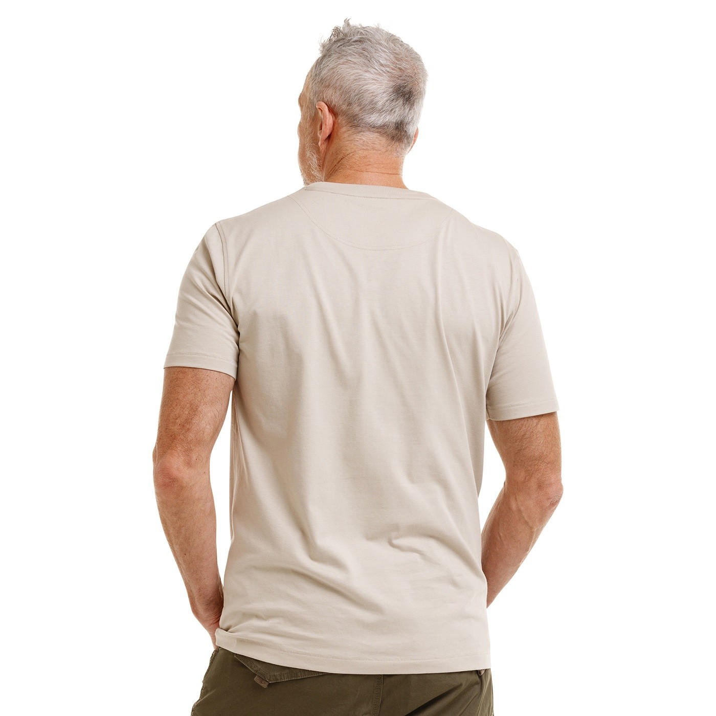 TAMAJ je univerzální basic tričko, které je prodyšné a příjemné na nošení. Rovný (byť užší) střih poskytuje komfort po celý den. Brandová výšivka na předním díle a ozdobné prošití švů dodávají tričku jemné detaily a autentický bushmanský charakter.
